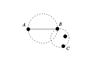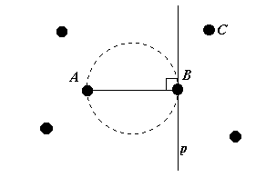 The brute force algorithm can be easily improved by the following heuristic. For a point we create a list of points which are its potential Gabriel neighbours. When checking if the point is indeed the Gabriel neighbour we must perform the test for every point C if it is contained in the diametral sphere (see Figure 3.2).