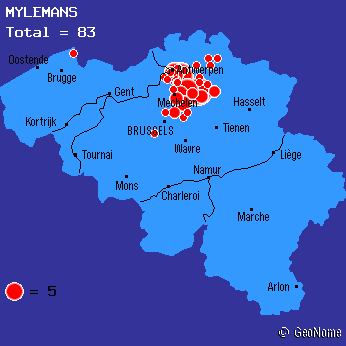 Distribution of Mylemans family (my mother's name).
