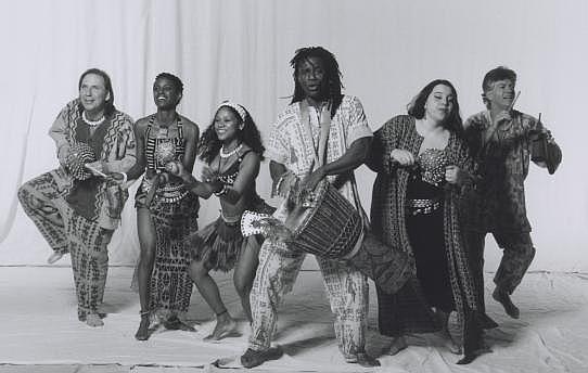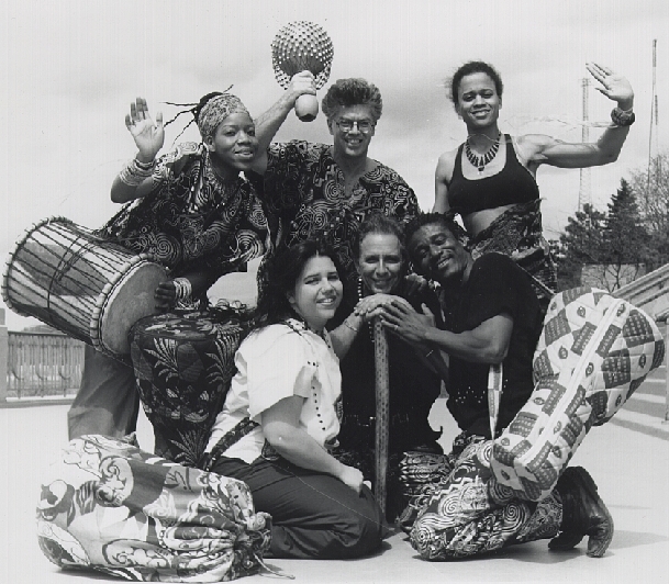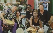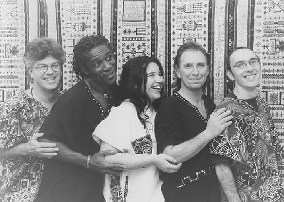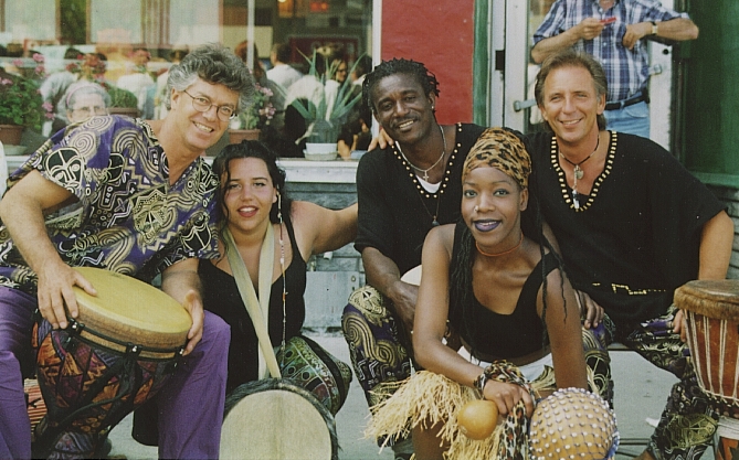 During a break at the Festival Nuit Blanche sur Tableau Noir on Mount Royal Street in June 1997. From left to right: Godfried Toussaint, Nadia Brossoit, Michel Balliet, Shakara and Bernard Desormeau.