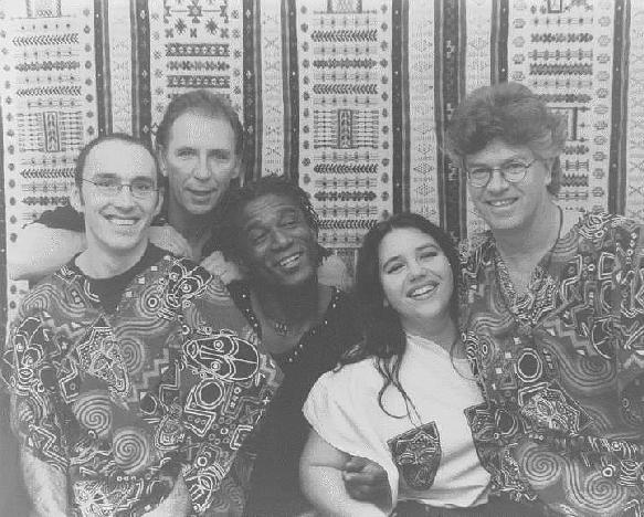 In the studio in February 2000. From left to right: Bernard Desormeau, Karla Etienne, Claudine Malard, Michel Balliet, Nadia Brossoit, and Godfried Toussaint.