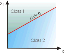 - This is accomplished by setting g1(x) = gi(x) and g2(x)=g(not i)(x). The probabilities for g2(x) can be obtained by summing all the probabilities for classes {1, ..., i-1 , i+1, ...., n}. If x belongs to class i, then gi(x) > g(not i)(x); otherwise X belongs to some other class.