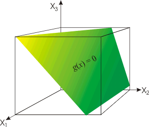 In a three dimensional feature space, the decision boundary g(x) = 0 is a plane,