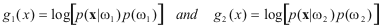 Since this is a two class problem the discriminant function g(x) = g1(x) - g2(x) where: